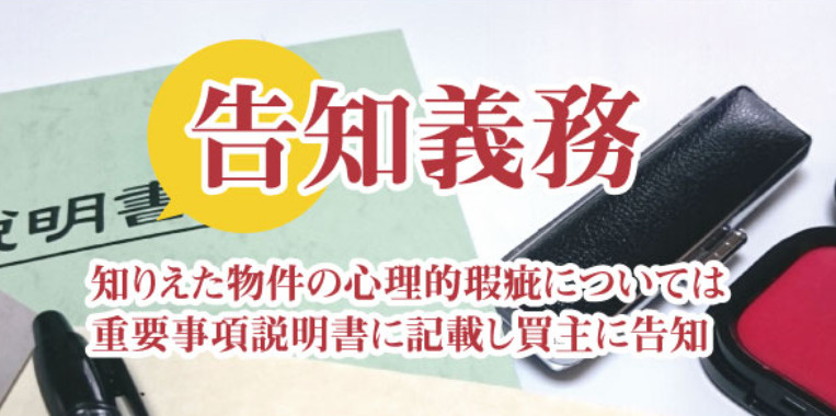 不動産を売却する場合、心理的瑕疵があるとき売主は買主にその旨を報告する告知義務があります。