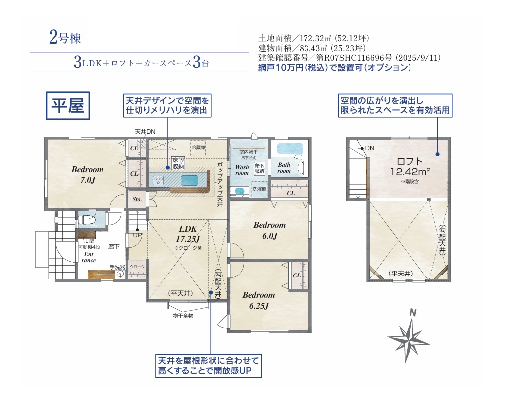・南側の2号棟が平屋住宅の為、陽当りと開放感があります♪