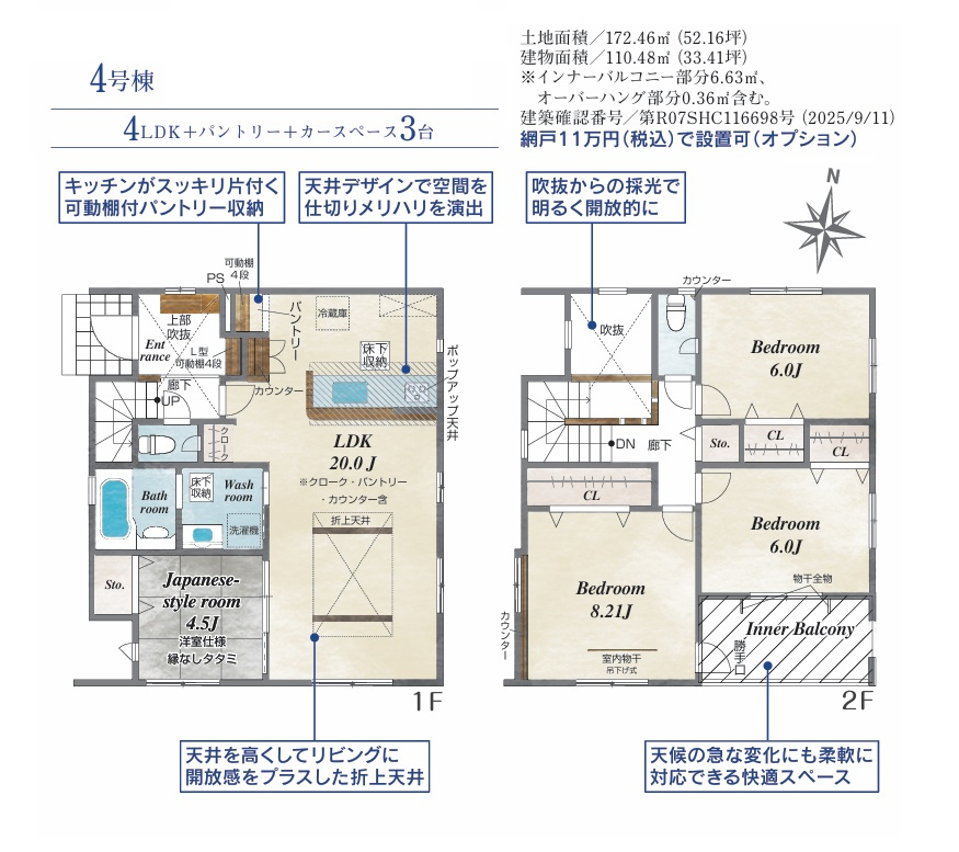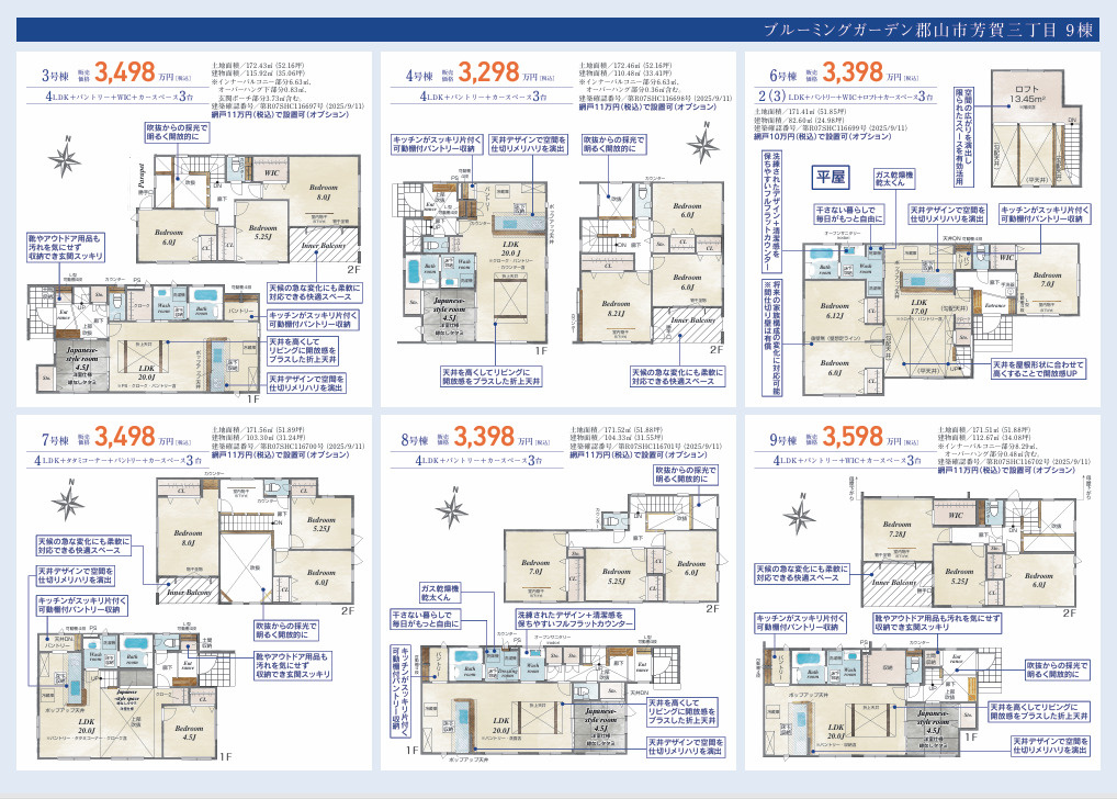 平屋から2階建てまで全8棟から、今でしたらご家族のお好みの物件をお選びいただけます。