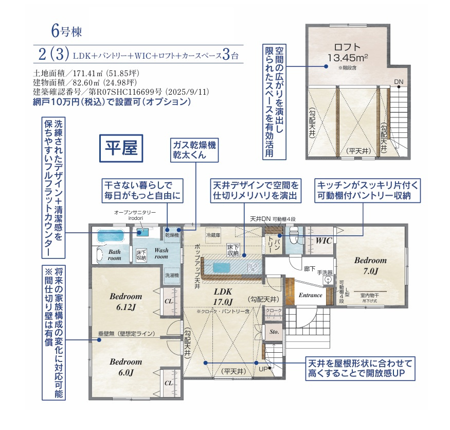 ・ガス乾燥機乾太くん設置(代わりにバルコニーなし)